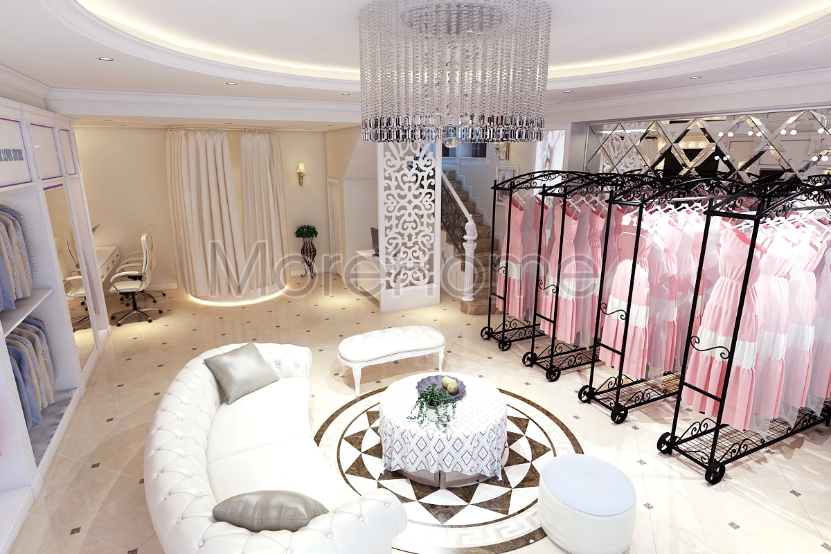 Một thiết kế showroom áo cưới ấn tượng và sang trọng chính là điều cần thiết và quan trọng để tôn vinh vẻ đẹp của những chiếc áo lộng lẫy cho ngày cưới. MOREHOME mang đến bạn tham khảo một số mẫu thiết kế nội thất showroom áo cưới dưới đây để tìm thêm ý tưởng cho cửa hàng của bạn nhé.